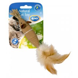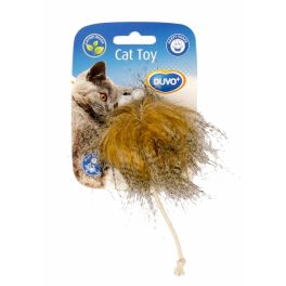 DUVO+ Дразнилка Мышь из картона с перьями, коричневая 12,5х9,5х3см - игрушка для кошек