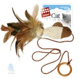 GIGWI Мышка со звуковым чипом и натуральными перьями игрушка для кошек