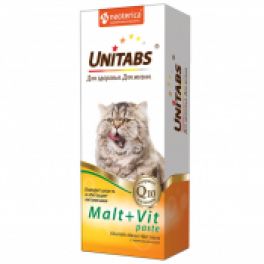 UNITABS Malt+Vit Витаминная паста для кошек с таурином для вывода шерсти 120мл