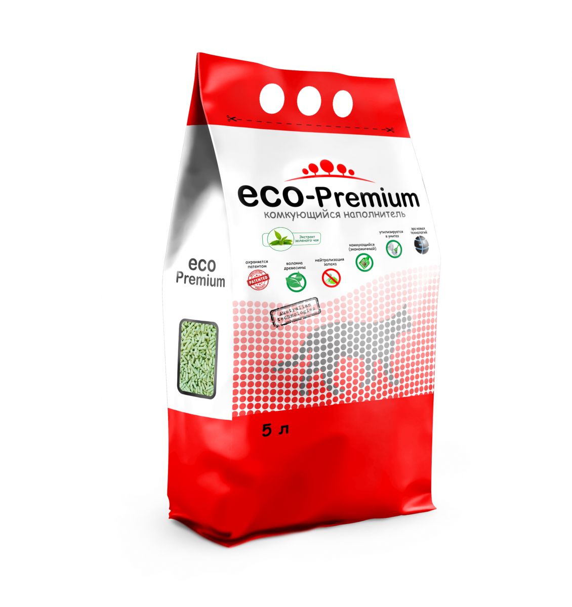 ECO PREMIUM Древесный комкующийся наполнитель с ароматом зеленого чая 5л