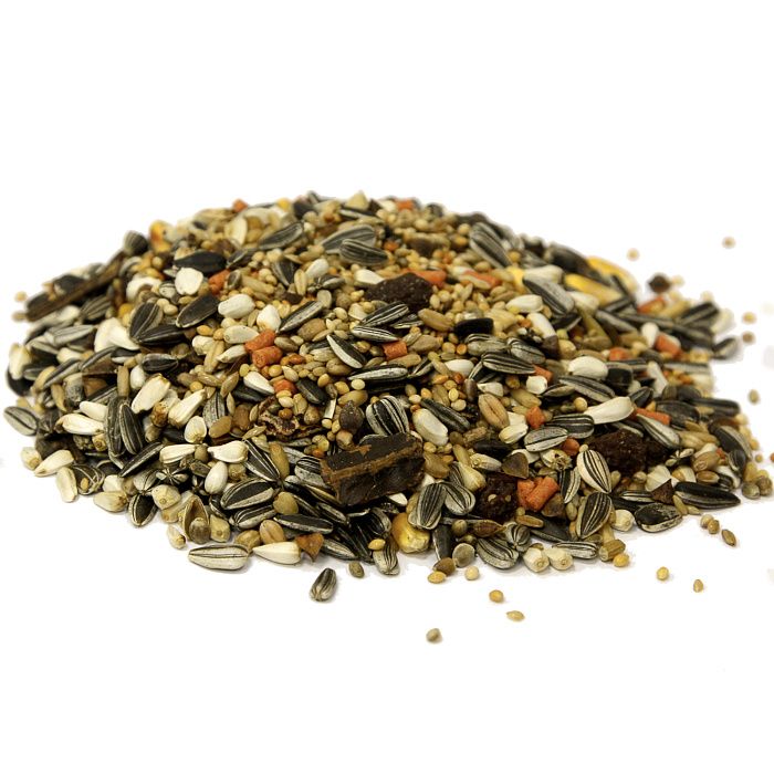 Семена подсолнечника полосатые, просо желтое, сафлор, просо белое, канареечник, пшеница, просо красное, кукуруза, гречиха, очищенный овес, гранулы (пекарные продукты, злаки и зерновые продукты, мёд 10%, масла, экстракт юкки Шидигера, красители и консерванты, одобренные ЕС) 4,1%, изюм 4,1%, бобы рожкового дерева, конопляное семя. ДОБАВКИ НА КГ: вит. А микрокапс. 5274 МЕ, вит. D3 52,74 МЕ, вит. E (альфатокоферол 91%) 7,03 МЕ, вит. B1 0,86 мг., вит. В2 0,17 мг., вит. B6 0,68 мг., вит. B12 0,004 мг, вит. PP 3,51 мг., кальций D-пантотенат 1,38 мг, фолиевая кислота 0,14 мг, бетаин 263 мг, L-лизин 0,88 мг, DL-метионин 0,17 мг, аминокислотный хелат цинка гидрат 3,56 мг, аминокислотный хелат марганца гидрат 1,84 мг, аминокислотный хелат меди гидрат 0,79 мг.