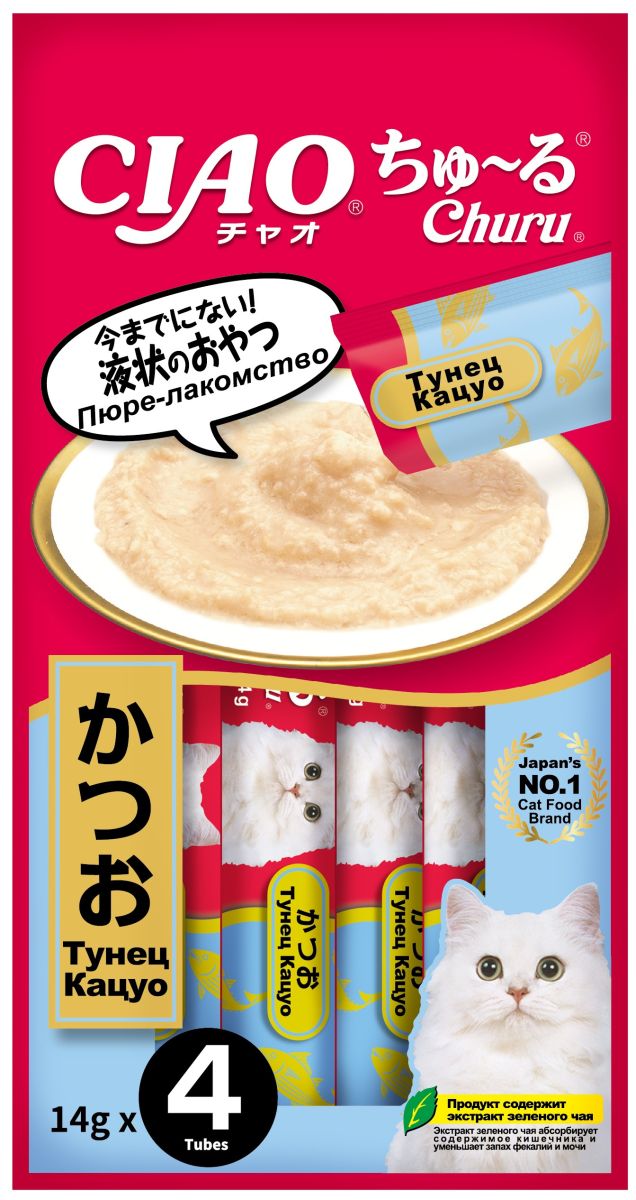 INABA CIAO Churu Пюре для кошек из тунца кацуо 4х14гр