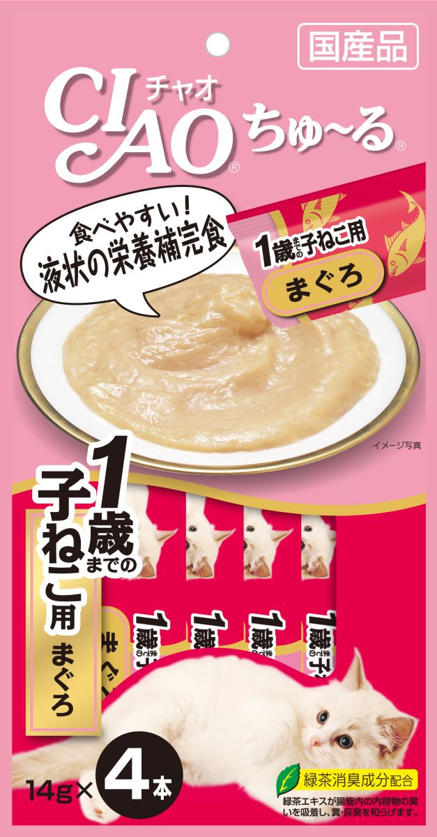 Суперпремиальное лакомство-пюре на основе мяса глубоководного тунца для котят Ciao Churu от японского производителя Inaba изготовлено исключительно из натуральных ингредиентов и отличается высоким процентом влажности, благодаря чему поддерживается водный баланс организма котенка. Корма и лакомства Inaba отличаются высоким качеством и неповторимым вкусом, ведь они изготавливаются только из отборных традиционных японских ингредиентов! Удобная упаковка позволяет кормить питомца прямо с рук, используя лакомство для поощрения или дрессировки или использовать его как топпинг к сухому или влажному корму. Во все продукты добавлен экстракт зеленого чая, который, благодаря содержанию катехина, обладает нейтрализующим действием на запах содержимого кишечника. Корм обогащён витамином Е — натуральным антиоксидантом, поддерживающим иммунную систему, не содержит искусственных добавок, красителей и консервантов.