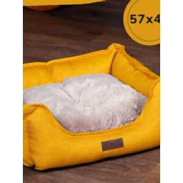Эко-мех имитирует комфорт материнской шерсти. Держит тепло, защитит от сквозняков, но и летом не будет жарко. Внутри ,как обычно, первосортный синтепух, а съемный чехол облегчит уход за лежанкой.