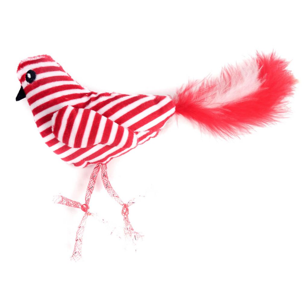 PETPARK Птичка с перьями 25см красно-белая - игрушка для кошек