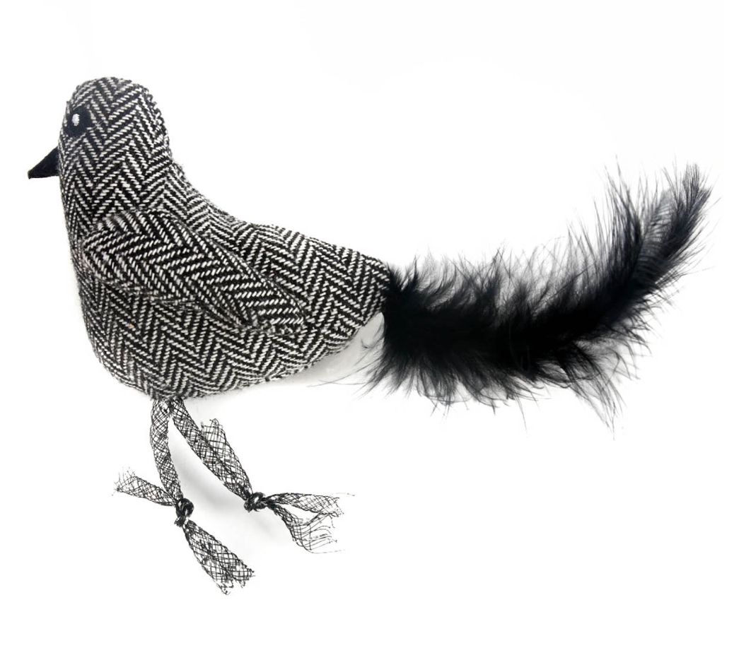 Мягкая текстильная игрушка для кошек в виде птички. Оформлена хвостиком с перьями и шуршащими лапками. Натуралистичность игрушки разбудит охотничьи инстинкты кошки и вовлечет ее в игру, а укрепленный материал позволит игре продлиться дольше