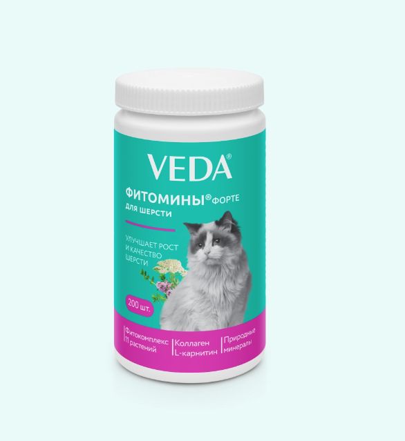 VEDA Фитомины Форте для кошек для шерсти 200т
