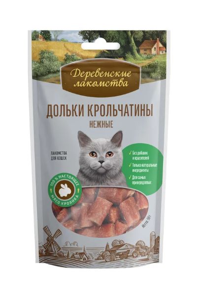 ДЕРЕВЕНСКИЕ ЛАКОМСТВА Дольки крольчатины нежные 45гр - лакомство для кошек
