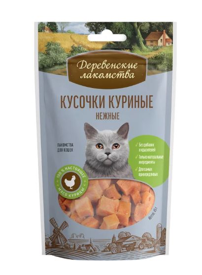 ДЕРЕВЕНСКИЕ ЛАКОМСТВА Кусочки куриные нежные 45гр - лакомство для кошек