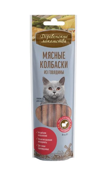 ДЕРЕВЕНСКИЕ ЛАКОМСТВА Мясные колбаски из говядины 45гр - лакомство для кошек