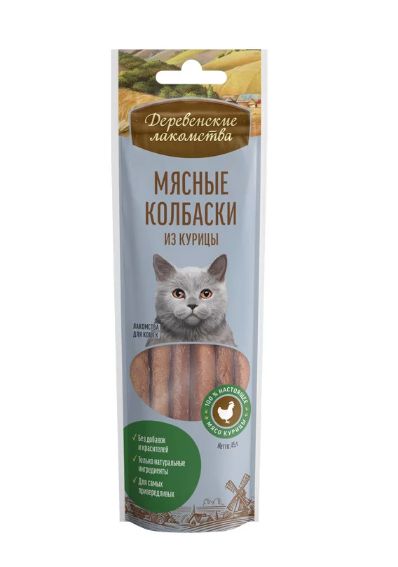 ДЕРЕВЕНСКИЕ ЛАКОМСТВА Мясные колбаски из говядины 45гр - лакомство для кошек