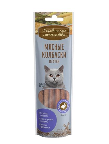 ДЕРЕВЕНСКИЕ ЛАКОМСТВА Мясные колбаски из утки 45гр - лакомство для кошек