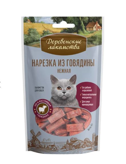 ДЕРЕВЕНСКИЕ ЛАКОМСТВА Нарезка из говядины нежная 45гр - лакомство для кошек