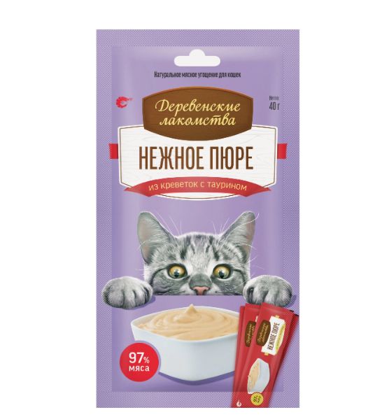 ДЕРЕВЕНСКИЕ ЛАКОМСТВА Нежное пюре из креветок 4х10гр - лакомство для кошек