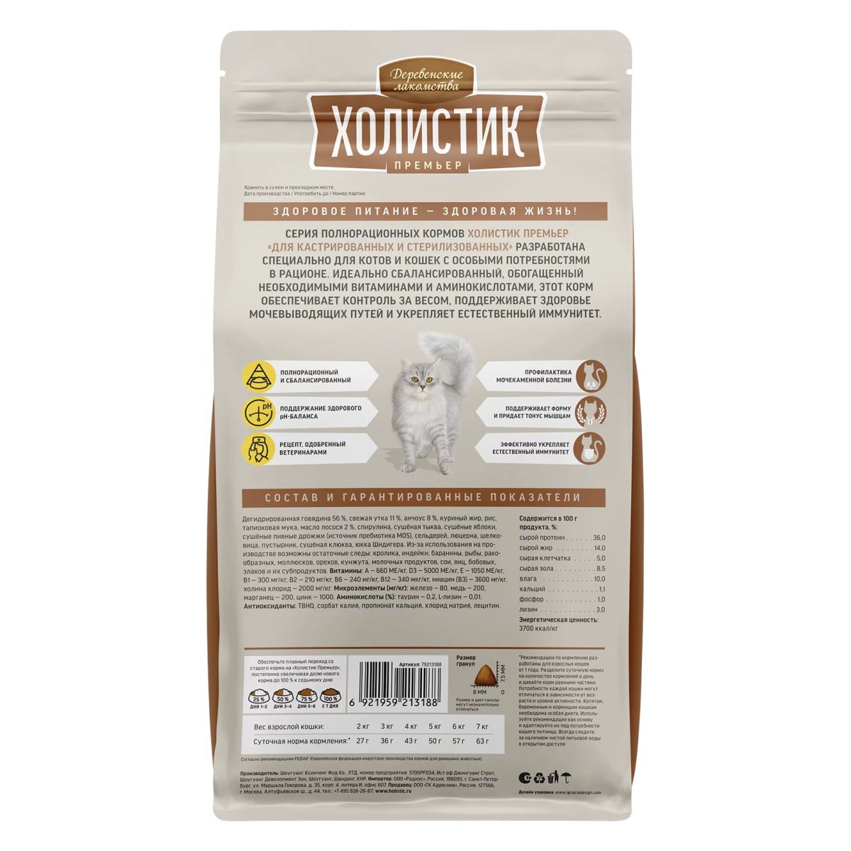 ДЕРЕВЕНСКИЕ ЛАКОМСТВА Премьер Сухой корм для стерилизованных кошек говядина