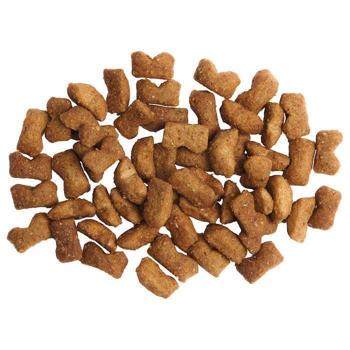 Злаки, мясо и животные производные 25% (дегидрированный цыпленок 13%, дегидрированная индейка 4%, мука из шквар (говядина, свинина), свиная печень, куриная печень), рыба и рыбные производные (дегидрированные: сельдь, макрель, сайда, треска, камбала), масла и жиры (куриный жир, жир индейки, масло лосося), минеральные вещества, экстракт растительных белков, яйцо куриное и яичные производные, дрожжи. Пищевые добавки: витамин А 12000 ME/кг, витамин D3 840 ME/кг, витамин Е 120 мг/кг, антиоксиданты.